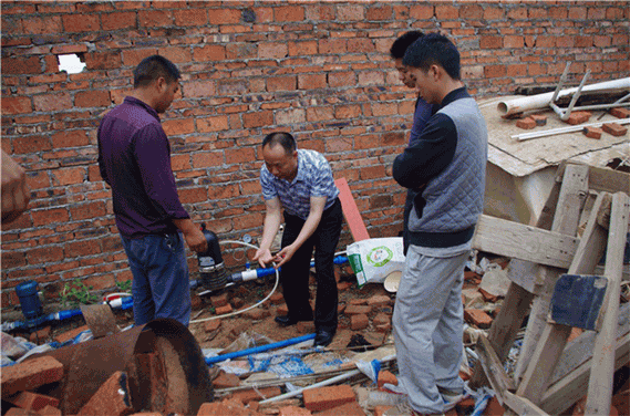 上圖為李總向專(zhuān)業(yè)戶(hù)建議將肥水池重新改造