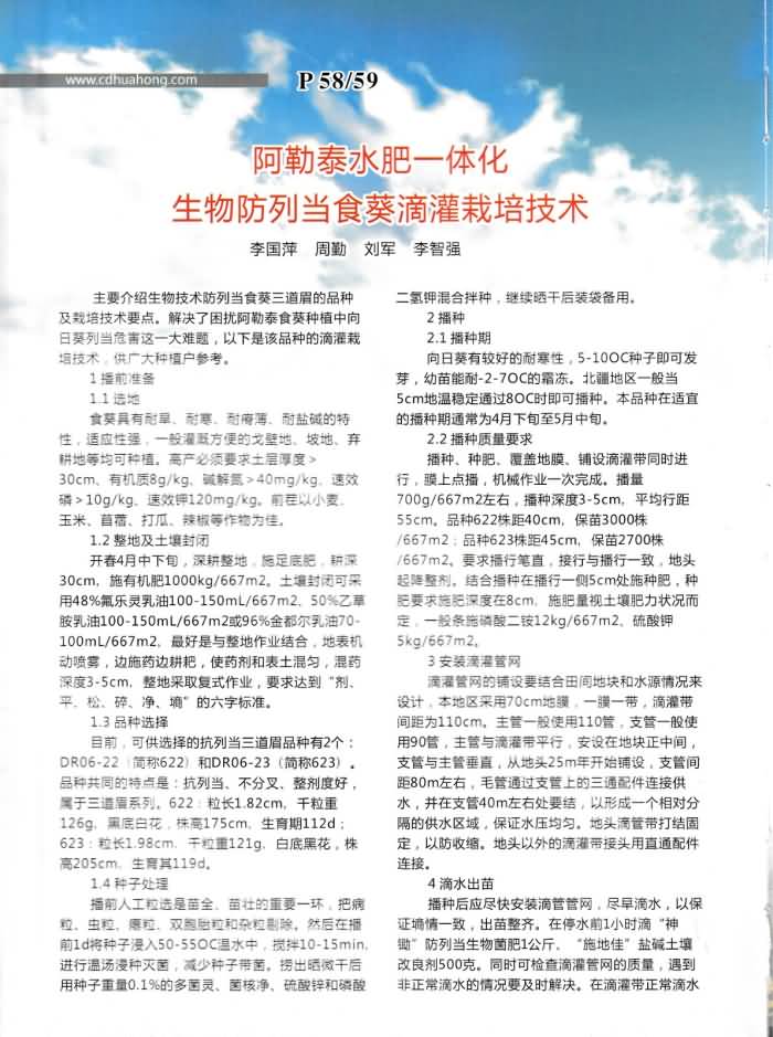 阿勒泰水肥一體化生物防列當食葵滴灌栽培技術(shù)